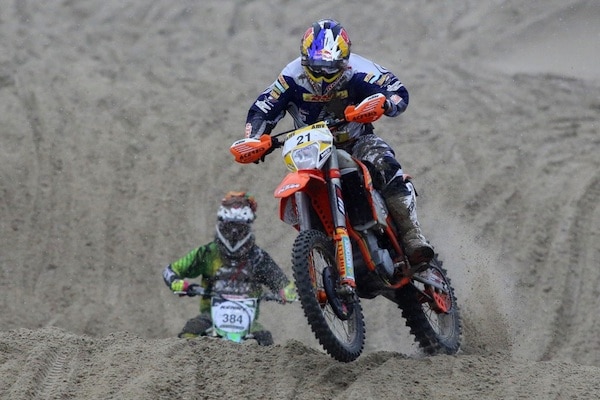 Antoine Meo : « Je suis encore sous le coup de la déception car cette épreuve était largement à ma portée. J’étais le plus rapide en course et ma 450 EXC préparée par l’usine a super bien fonctionné. Je suis parti 11e et j’ai rapidement pris la tête de la course. J’ai connu un petit souci avec une ouïe de radiateur qui m’a fait rentrer au stand plus tôt que prévu. J’ai mené pendant plus de 2h30 mais à cause de cet arrêt prématuré au 3e tour, mon assistance craignait que je sois juste en carburant et a préféré me faire rentrer pour un 3e ravitaillement express en fin de course. C’est là que Van Bereven m’a passé. Je suis reparti avec plus de 40 secondes de retard. J’en ai repris 18 dans l’avant dernier tour mais ça n’a pas été suffisant. Nous avons eu des conditions de course très difficiles avec du vent, de la pluie et même de la grêle. Contrairement aux pilotes du top 10, le Touquet n’est pas mon objectif de la saison et je n’y ai pas consacré 6 mois de préparation. Quoiqu’il en soit, la performance reste belle, je remercie le team et les mécanos qui ont fait un super boulot. »