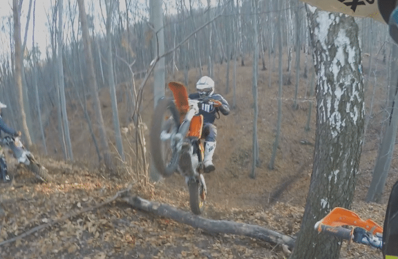 Concernant la KTM 450 EXC : pleine dès l’ouverture, elle n’arrête jamais de pousser. Charge au pilote de faire coller...