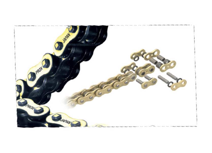Chaîne 520 X-Ring Gold de Prox, la réputation de la métallurgie japonaise n’est plus à faire. La chaîne 520 X-Ring Gold de Prox est un modèle à joints toriques made in Japan, gage de qualité de ses composant intrinsèques. Disponible chez Toolmuch à un rapport qualité-prix extrêmement compétitif pour ce produit haut de gamme, le top de la marque Prox.