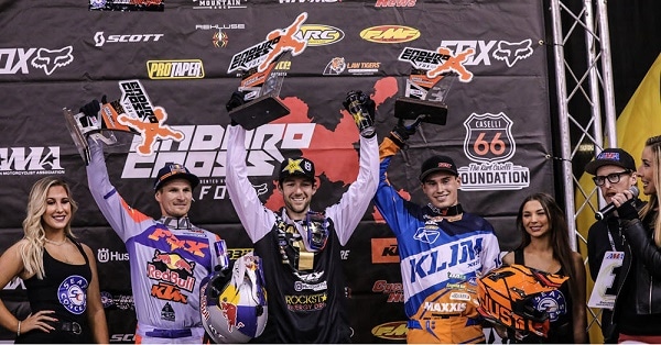 Colton Haaker s’est imposé lors de la finale du championnat des Etats-Unis d’EnduroCross ce week-end du côté de Boise (Idaho) avec un impeccable 1/1/2, devant le monstre sacré de la discipline Taddy Blazusiaik qui faisait cette année son retour aux USA. Rappelons que la série EnduroCross est passée tout près de ne pas voir le jour cette saison, sauvée in-extremis par son créateur Eric Peronnard et un associé à lui. De fait, les pilotes n’ont eu que trois épreuves pour se départager. Rendez-vous maintenant en Europe pour le championnat du monde de SuperEnduro, dont le tenant du titre n’est autre que… Colton Haaker.