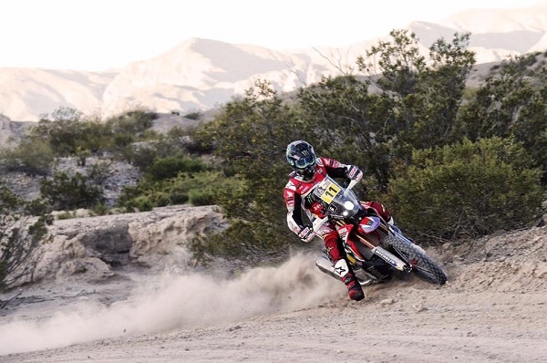 364 km de spéciale, un passage sur l’Altiplano, des variations de températures de 40° et du hors piste… Cette étape 3 entre San Miguel de Tucumán et San Salvador de Jujuy n’a pas ménagé les pilotes. Et si hier Toby Price avait assommé la course, l’Australien a eu du mal à ouvrir la route aujourd’hui, prenant plus de 20 mn dans les dents dès le début de la spéciale par un des ses principaux concurrents, Joan Barreda. Le fougueux espagnol, souvent prompt à aller à la faute, a en effet cette fois-ci parfaitement négocié cette étape très délicate en terme de navigation, et s’impose avec des écarts pharaoniques. Imaginez que le second, Sunderland sur sa KTM, est relégué à 13 mn ! Excellente troisième place de notre français Pela Renet, à 16 mn. Une super étape, donc, pour l’officiel Husky rentré prudemment dans ce Dakar mais qui fait un gros coup sur cette étape en rentrant dans le top 10 général à la 8e place. Go Pela ! Difficile journée, par contre, pour la révélation de ce début de rallye Xavier de Soultrait. Notre grand blond à bouclettes a jardiné un moment en début d’étape pour trouver un way point avec Price, Walkner et Goncalves. Il se retrouve 13e du général à 31 mn de la tête. Rien de grave, quand on sait ce qui reste à parcourir et la vitesse affichée jusqu’ici.