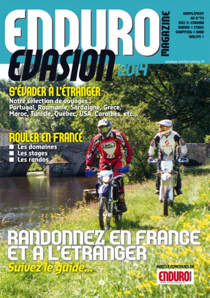 le feu nourri des anecdotes qui ne manqueront de fuser, l’heure de l’apéro venue… L’enduriste est potache, joueur et bon vivant. C’est bien connu. Ce guide Enduro Evasion 2014 inséré dans Enduromag #73 tombe à point pour vous donner des idées et des envies. Un stage pour enfin maîtriser cette fameuse technique du virage à plat, une rando dans une région inconnue, un raid au bout du monde ou juste de l’autre côté de la frontière ? Les propositions sont nombreuses et les professionnels du secteur sont tous des passionnés, prêts à partager leurs connaissances. Faites-leur confiance, ils le méritent. Mais, surtout, ne cédez pas à la morosité ambiante, continuez de rouler dans les chemins, de vous retrouver entre amis, d’avoir envie de sorties dominicales et matinales, de découverte de régions et de pays hors du tourisme de masse… Parce que cette liberté-là, un tantinet anticonformiste, est précieuse. Roulez !