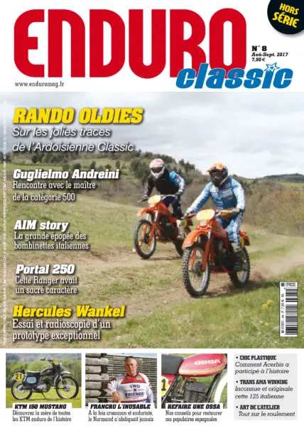 La période estivale sonne la sortie de notre hors-série Enduro Classic. Le cru 2017 sera encore riche en bonnes choses, une véritable ode au vintage, au vrai, avec des sujets inédits, dont l’essai de l’exceptionnelle Hercules à moteur Wankel, une interview du seigneur de la 500, Guglielmo Andreini, la radioscopie de la première KTM enduro de l’histoire ou encore l’épopée d’une micro-marque de légende, AIM et ses