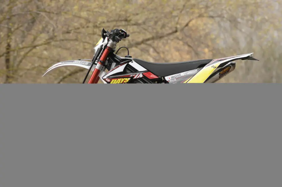 Concernant la Gasgas 300 EC Six Days 2010 : grosse nouveauté, le cadre et sa boucle arrière sont complètement nouveaux. La pédale de frein est dorénavant réglable. La béquille est inédite, comme le réservoir désormais translucide pour pouvoir contrôler le niveau. Le carter de pompe à eau a été revu, tout comme le design des ouïes de radiateurs. Roues et tés de fourche ont aussi été changé. Notez qu’en version Six Days, l’EC reçoit un silencieux FMF.