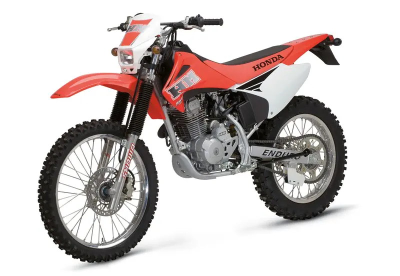 La HM CRF 230 F Enduro 2010 s’adresse en priorité aux randonneurs de petite taille dont les ambitions en compétition riment avec loisir. Confortable, basse, maniable et pourvue d’un démarreur électrique, c’est une moto particulièrement docile dont les rapports de boîte très courts garantissent de passer partout. Réputé super fiable, son moulin incite au jeu par son caractère assez vif et puncheur dans les mi-régimes. Dotée de suspensions “trail“, elle n’incite pas à la grosse attaque, mais ce n’est pas non plus sa vocation.