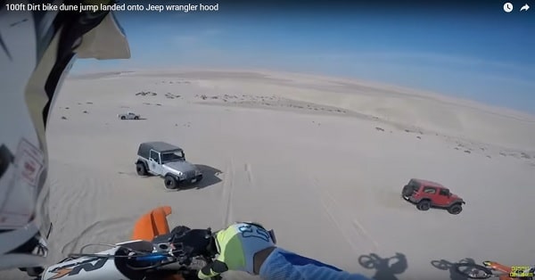 On en sait un peu plus sur cette incroyable vidéo qui circule. Un pilote saute une dune dans le désert au Qatar, sans voir la Jeep qui se promène derrière. Les potes des pilotes n’ont semble-t-il pas eu le temps de prévenir de l’obstacle. Heureusement, le conducteur a le réflexe de freiner, ce qui a peut-être sauvé Kal, le KTM rider, de graves blessures… Là, il s’en tire juste avec un caleçon souillé. Un moindre mal. Par contre, on ignore comment se rédigent les constats au Qatar, mais on peut penser que ça pas être simple !