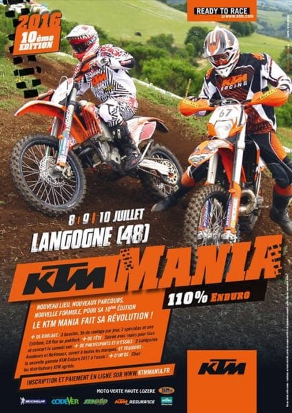 Depuis hier, la 10e édition du KTM Mania a ouvert ses portes, avec notamment les essais de la gamme 2017. Le tout sur un nouveau site, Langogne (48), la même où a eu lieu la finale du championnat de France 2015.