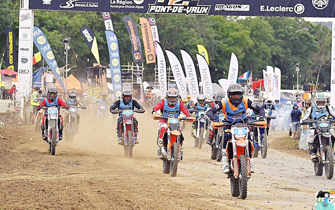 en 1e place le #903 Stéphane DUCHENE sur sa GasGas EC 250, suivi à la 2e place du #846 Jérémy GOYON sur Yamaha 450 et sur la 3e marche le #104 Théo CHAPILLON sur KTM EXCF 250. Suivis ensuite de :