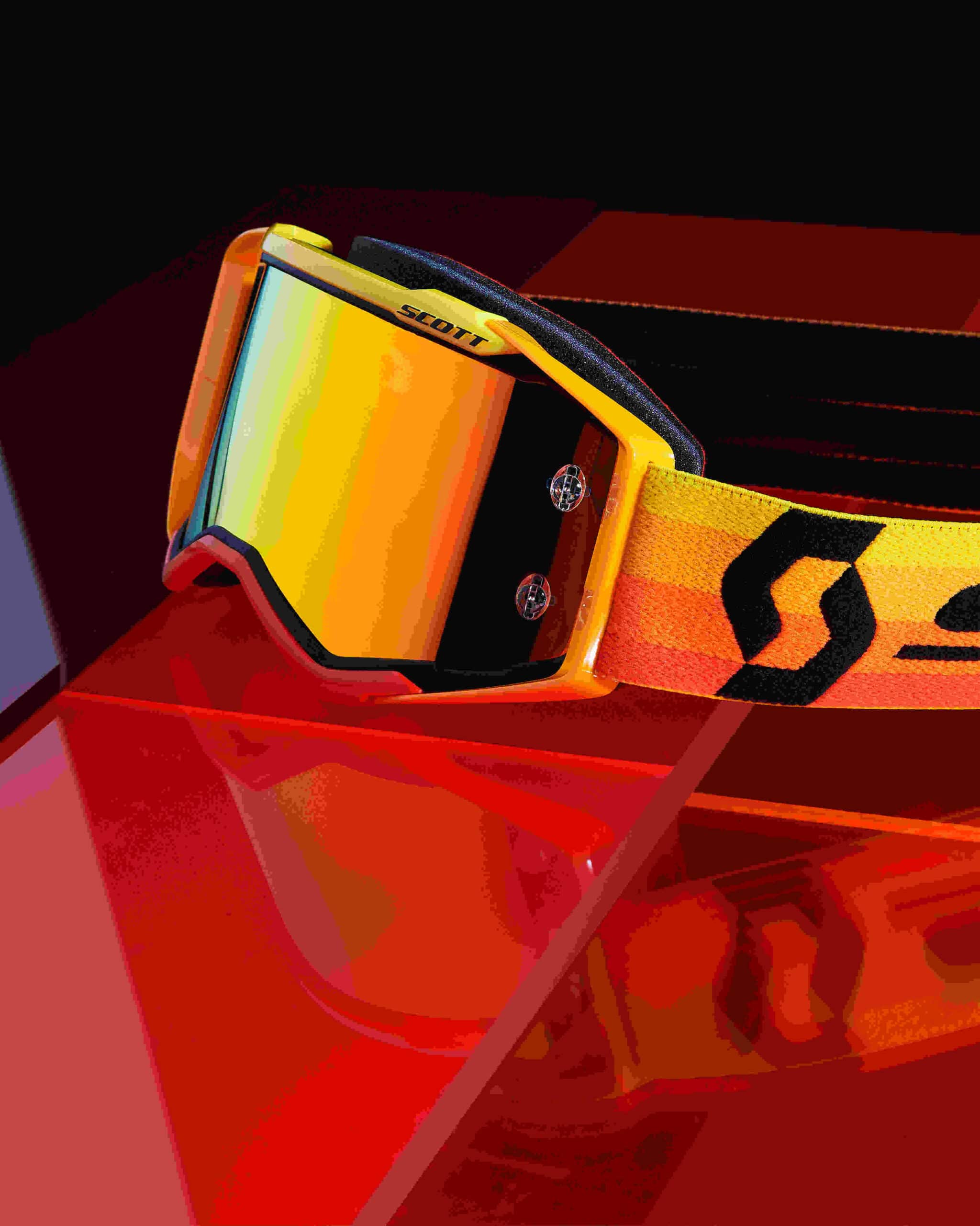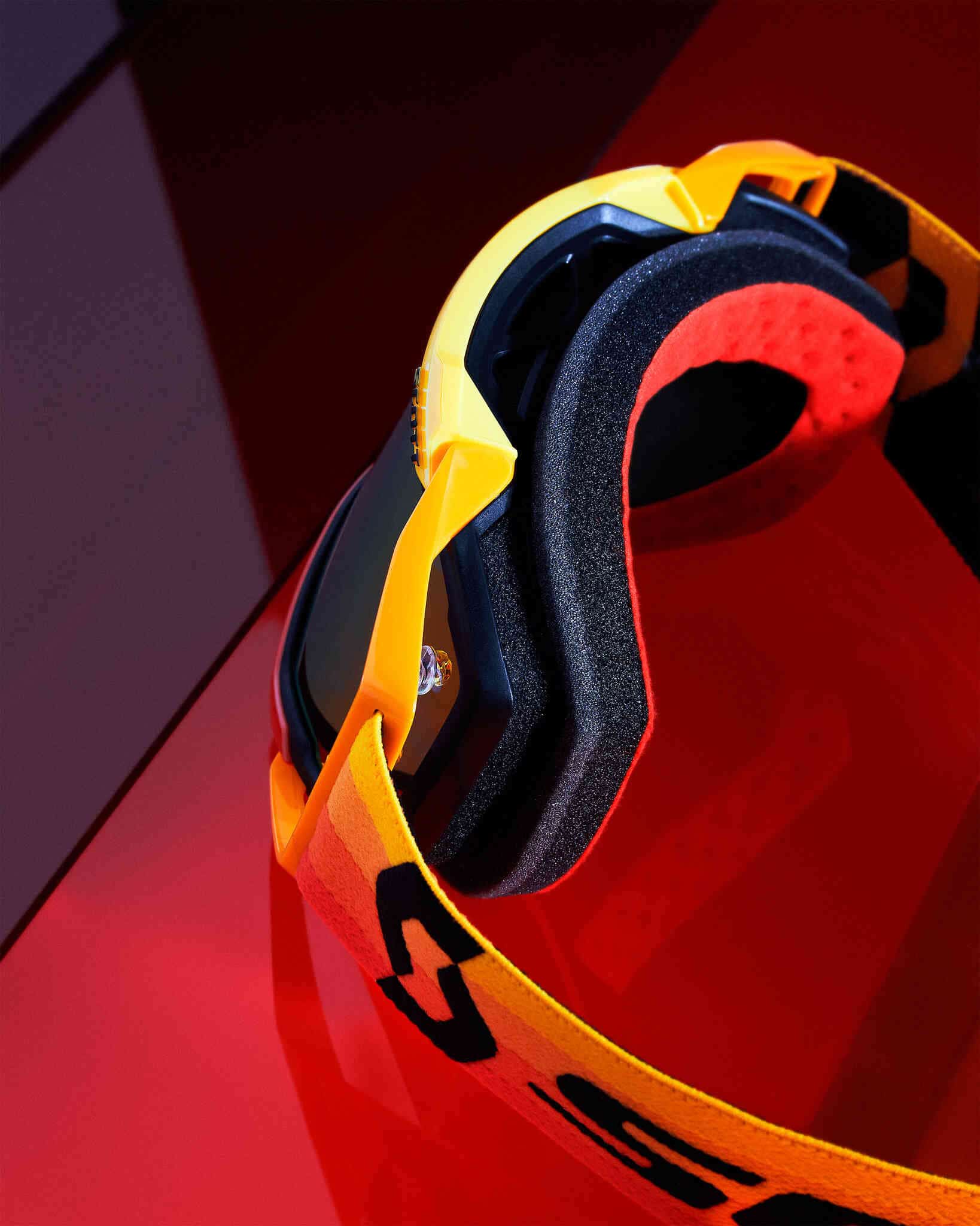 Le casque reflète à la perfection les couleurs d’un coucher de soleil californien, le jaune, le rouge et orange. Ces trois couleurs sont montées de façon harmonieuse sur la dragonne et la monture. Désigné par SCOTT Sports comme le “masque phare” du constructeur, il est utilisé par une liste de champions tout terrain qui ne cesse de s’agrandir, un vrai gage de qualité !