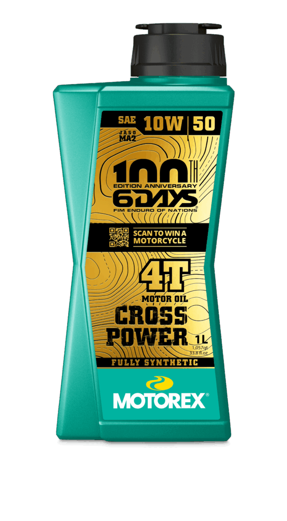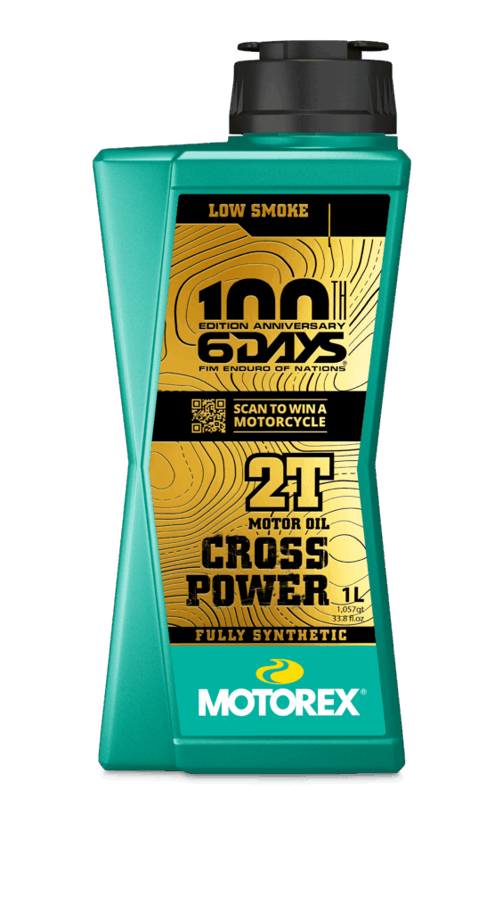 À l’occasion de la 100ᵉ édition des 6Days FIM, MOTOREX dévoile une édition limitée de deux de ses huiles moteur emblématiques : CROSS POWER 2T et CROSS POWER 4T 10W/50.