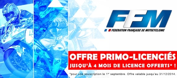 Au 1er septembre 2014, la Fédération Française de Motocyclisme renouvelle son opération primo-licenciés permettant de bénéficier d’une licence annuelle compétition ou entraînement d’une validité de 16 mois, soit jusqu’à 4 mois offerts*.