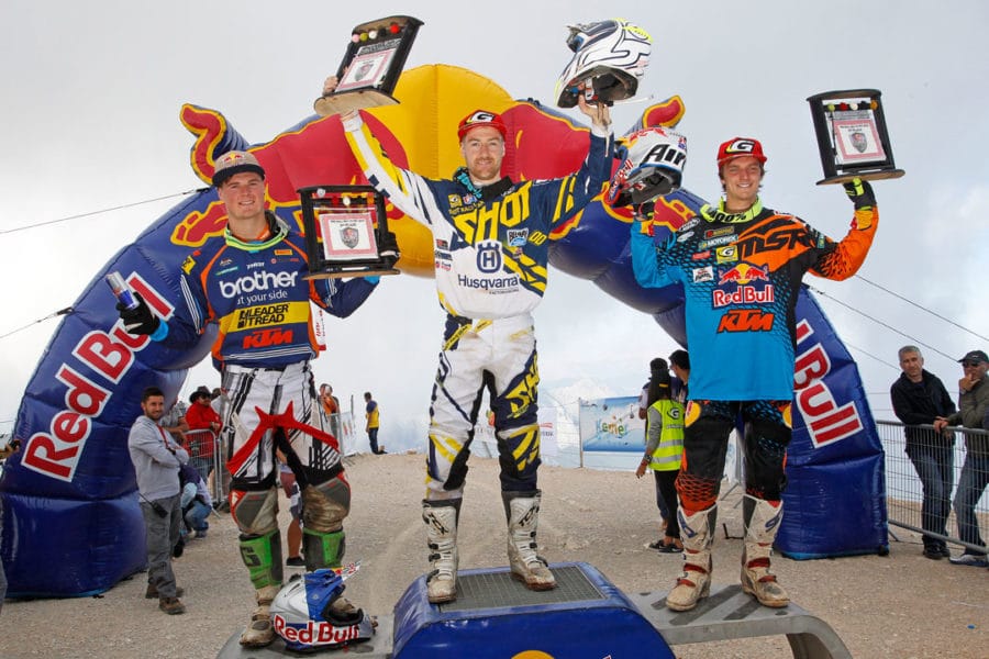 Second du prologue sur la plage puis de la course dans les bois, Graham Jarvis n’a pas manqué l’occasion de faire dérailler le grand chelem que convoitait tant Jonny Walker. Malgré un départ raté, le pilote HVA a pris son temps pour remonter sur le duo de tête Walker/Young, avant de zapper le ravitaillement pour prendre l’avantage. Un avantage qu’il gardera jusqu’à la fin pour s’imposer avec trois minutes d’avance au sommet de la montagne turque. « Je voulais vraiment gagner. Je savais que la fin de course se faisait dans des sentiers serrés où il serait difficile de doubler. » a déclaré Jarvis suite à sa victoire. Second, Walker s’est montré bon perdant et fataliste. « J’ai remporté cinq courses cette saison, je sais à quel point il est difficile de les gagner toutes. Je suis tout de même satisfait de cette seconde place. » Enfin, le jeune sud-africain Wade Young complète le podium, après avoir brièvement mené les troupes en début de course. Autre habitué des courses extrêmes, l’anglais Paul Bolton termine quatrième devant Andrea Lettenbichler. Retrouvez l’ensemble des résultats ici