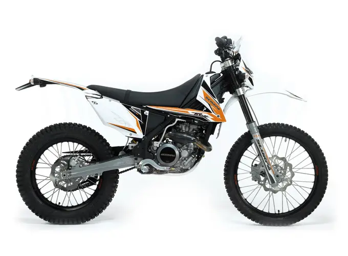 Concernant la Scorpa 250 T-Ride 2010 : l’implication du constructeur français en trial a abouti à ce concept original et résolument orienté vers le franchissement. L’architecture de la machine est cependant assez éloignée de celle d’une trial. Ainsi, la hauteur de selle est plus élevée (sans être exagérée) et la position de conduite confortable. Particulièrement facile dans le technique et dotée d’un moteur 4-temps Yamaha qui affiche une belle santé dès les mi-régimes, cette T-Ride s’avère être une très bonne randonneuse. Dans les conditions sévères, un bon pilote se sentira en revanche limité par une fourche un peu en retrait. A noter que Scorpa ayant trouvé repreneur, la production des T-Ride repart et en profite pour s’étoffer d’une 125 à moteur Yamaha 4-temps. Enfin, le prix indiqué est celui du modèle 2009, mais ne devrait pas être soumis à une importante variation.