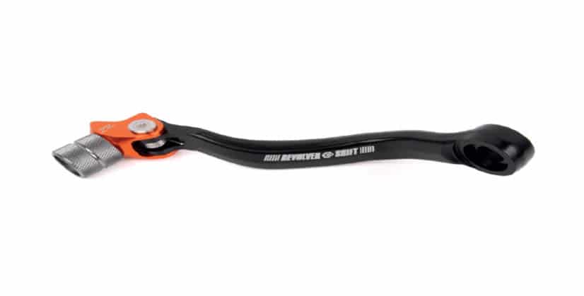 Sélecteur de vitesse Revolver Zeta, pourquoi ce sélecteur Zeta est-il baptisé Revolver alors qu’Obama est en train de vouloir désarmer les cow-boys ? Parce qu’il est réglable en 6 positions, autant de coups qu’un gun ! L’axe d’embout est décentré et permet ainsi de se régler vers le haut, le bas, l’avant et l’arrière. Dispo pour tous les modèles depuis 2007 dans le coloris de votre machine.