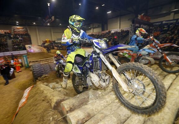 Premier round du championnat 2016 d’enduro extrême britannique à Tong. David Knight l’emporte....