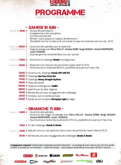 Pas encore inscrit ? Pas grave ! Inscrivez sur place samedi matin PROGRAMME ENDURO MAG DAYS – SAMEDI 10 ET DIMANCHE...