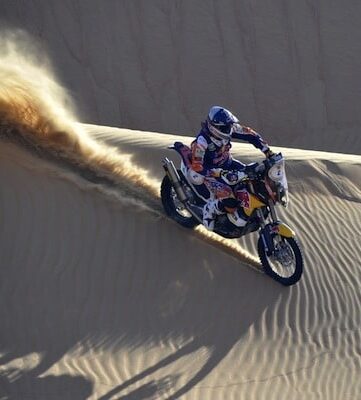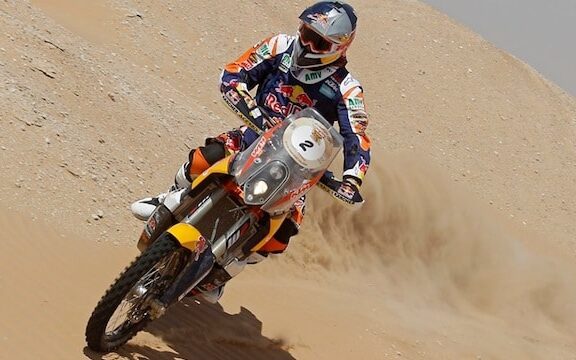 Les deux pilotes KTM se disputent la tête de course au Desert Challenge qui se court actuellement aux Emirats Arabes...