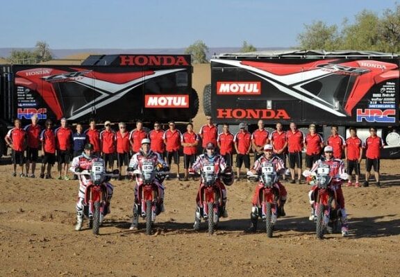 Honda participera au Dakar en Amérique du Sud , avec la structure » Team HRC » et cinq pilotes :...