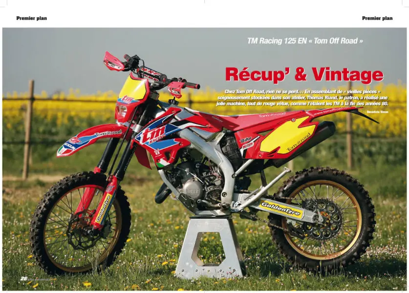 Chez Tom Off Road, rien ne se perd… En assemblant de « vieilles pièces » soigneusement stockées dans son atelier, Thomas Riand, le patron, a réalisé une jolie machine, tout de rouge vêtue, comme l’étaient les TM à la fin des années 80.