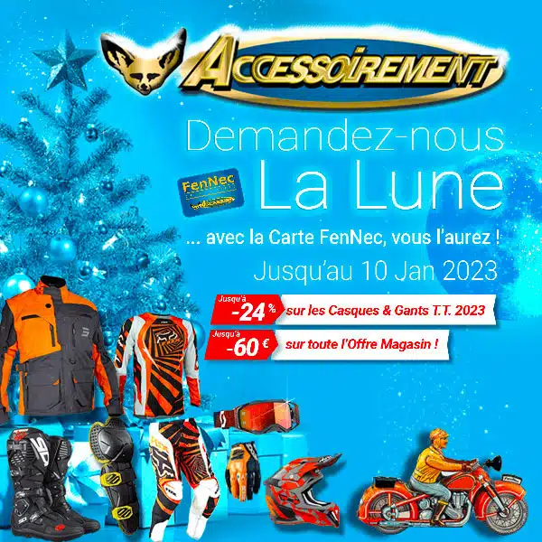 L’hiver et les fêtes de fin d’année sont les occasions parfaites de s’offrir quelques nouveautés dans équipement enduro. ACCESSOIREMENT est peut-être le bon deal que vous recherchiez. L’enseigne boulognaise propose une offre commerciale valable jusqu’au 10 janvier 2023 !
