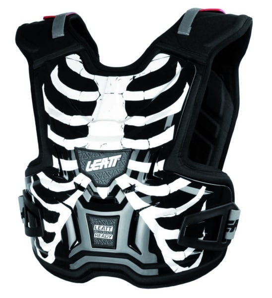 Dernier né des laboratoires du Dr. Leatt, le gilet Adventure Lite Junior est spécialement conçu pour épouser au mieux la forme des kids. Homologué EN1621-2 de niveau 2 pour la partie dorsale et EN 14021 pour la partie thoracique, sa zone dorsale est composée de trois vertèbres pour favoriser les mouvements. S/M (134/146 cm), L/XL (147/159 cm). Coloris : blanc, noir, cage (noir squelette blanc). 119 € (noir/blanc), 193 € (cage).