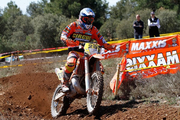 «C’est quoi cette catégorie de fou ?!?! » Ces termes sont ceux de Jérémy JOLY (F – KTM) qui termine à la 7e position de la catégorie Enduro 3 à la fin de ce dernier jour de course. Dès le début de journée, c’est Mathias BELLINO (F – HVA) qui se charge d’imposer le rythme. Il prend alors près de 6 secondes d’avance sur Matthew PHILLIPS (AUS – KTM) le premier des poursuivants. Mais dans la Cross Test, Ivan CERVANTES (E – KTM), frappe très fort (photo). Puis El «Torito» prend les commandes de la catégorie à la fin du premier tour pour ne plus jamais les lâcher et signer ainsi un magnifique doublé sur ses terres de Catalogne : «C’est un début de saison parfait pour moi ! En plus de ça dans ma région. Cela fait beaucoup de bien !». Derrière lui, Matti SEISTOLA (SF – Sherco), assez discret jusque là, est venu se mêler à la bataille pour décrocher une place sur le podium (2e). BELLINO, PHILLIPS, Luis CORREIA (P – Beta) et Aigar LEOK (EST – TM) se sont disputés la dernière marche et c’est le jeune Australien qui empoche finalement son second podium du weekend tandis que CORREIA et LEOK complétent le Top 5. Mathias BELLINO est donc le grand perdant de cette journée folle en raison de trop grandes difficultés dans l’Enduro Test… A noter aussi la très médiocre 14e place d’un Joakim LJUNGGREN (S – HVA) très décevant qui a déjà presque perdu tout espoir de titre…