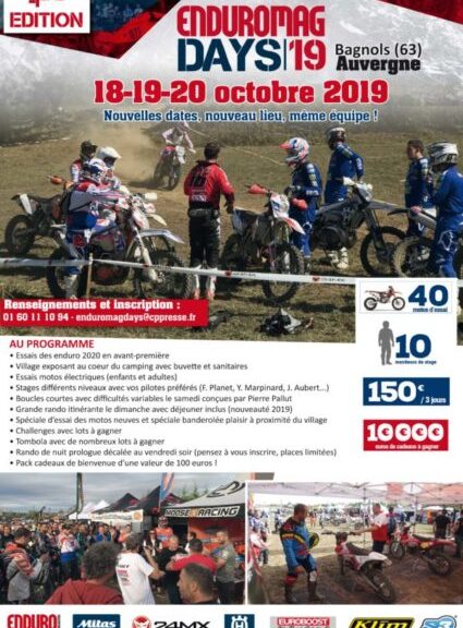 Samedi 19 octobre prochain à 22h à la salle des fêtes de Bagnols (63810, Auvergne), les 400 inscrits aux EnduroMag...
